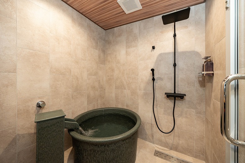 浴室には信楽焼のつぼ湯が設置されており、和の雰囲気を感じながらお寛ぎいただけます。